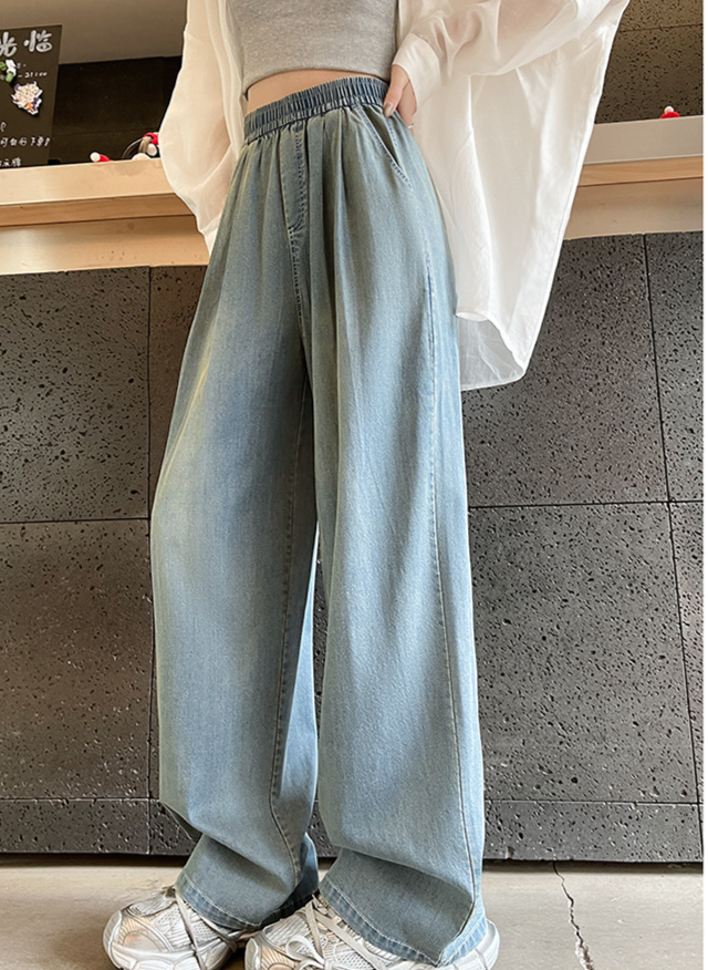 面倒なボタンタイプではなく、ゴム製ワイドフィットのデニム風ジーンズです。